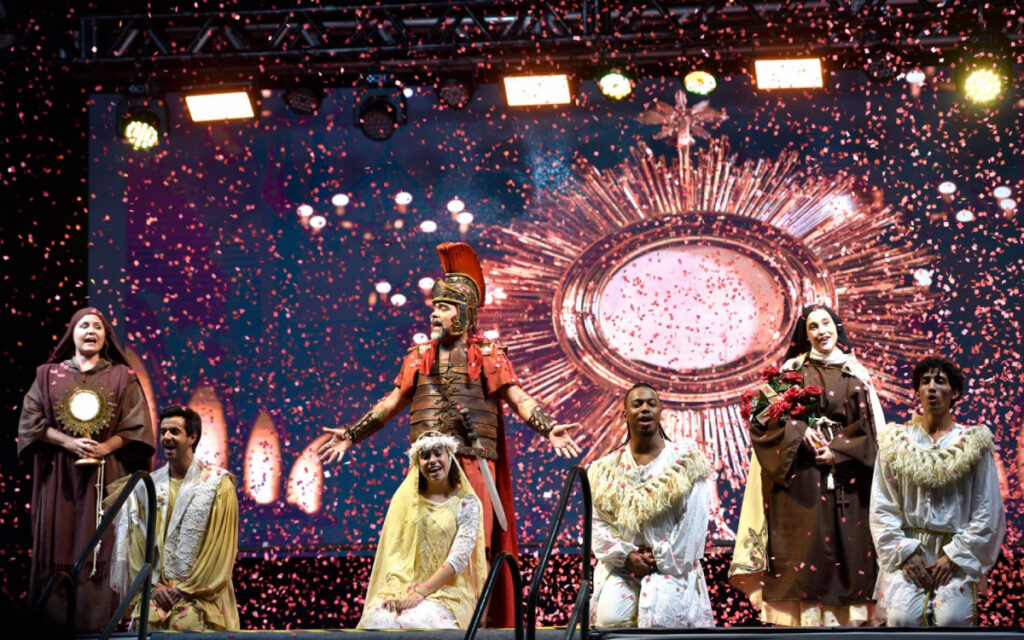 Pelo segundo ano consecutivo, o espetáculo, que tem direção de Luis Fernando Bruno, contará com a participação de 15 artistas (atores, cantores e bailarinos). A peça explora a vida de santos católicos, como Santo Antônio, Santa Teresinha, São João Paulo II, Padre Pio e a Virgem Maria, destacando suas experiências místicas e devoção à Eucaristia.