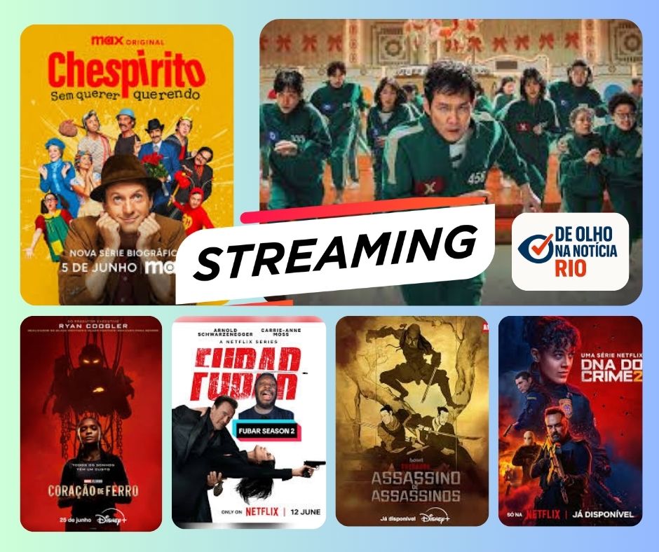 Junho de 2025 nos streamings traz a final de “Round 6” (Netflix, 27/06). A Netflix também lança a 2ª temporada de “DNA do Crime” (04/06) e “FUBAR” (12/06) com Schwarzenegger. Na Disney+, chegam o filme animado do Predador (06/06) e a série Marvel “Coração de Ferro” (24/06). A Max estreia a biografia “Chespirito: Sem Querer Querendo” (05/06).