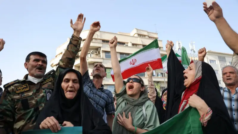 Pessoas participam de protesto em Teerã após bombardeios dos EUA