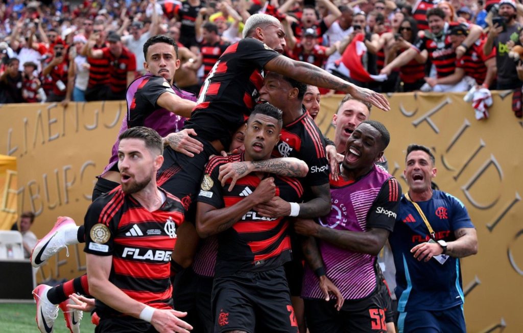 Continuar lendo...O Flamengo conquistou uma virada espetacular por 3 a 1 sobre o Chelsea na Copa do Mundo de Clubes, com gols de Bruno Henrique, Danilo e Wallace Yan. A vitória na Filadélfia coloca o Rubro-Negro na liderança de seu grupo, encaminhando a classificação para as oitavas de final do torneio. Bruno Henrique foi eleito o melhor em campo.