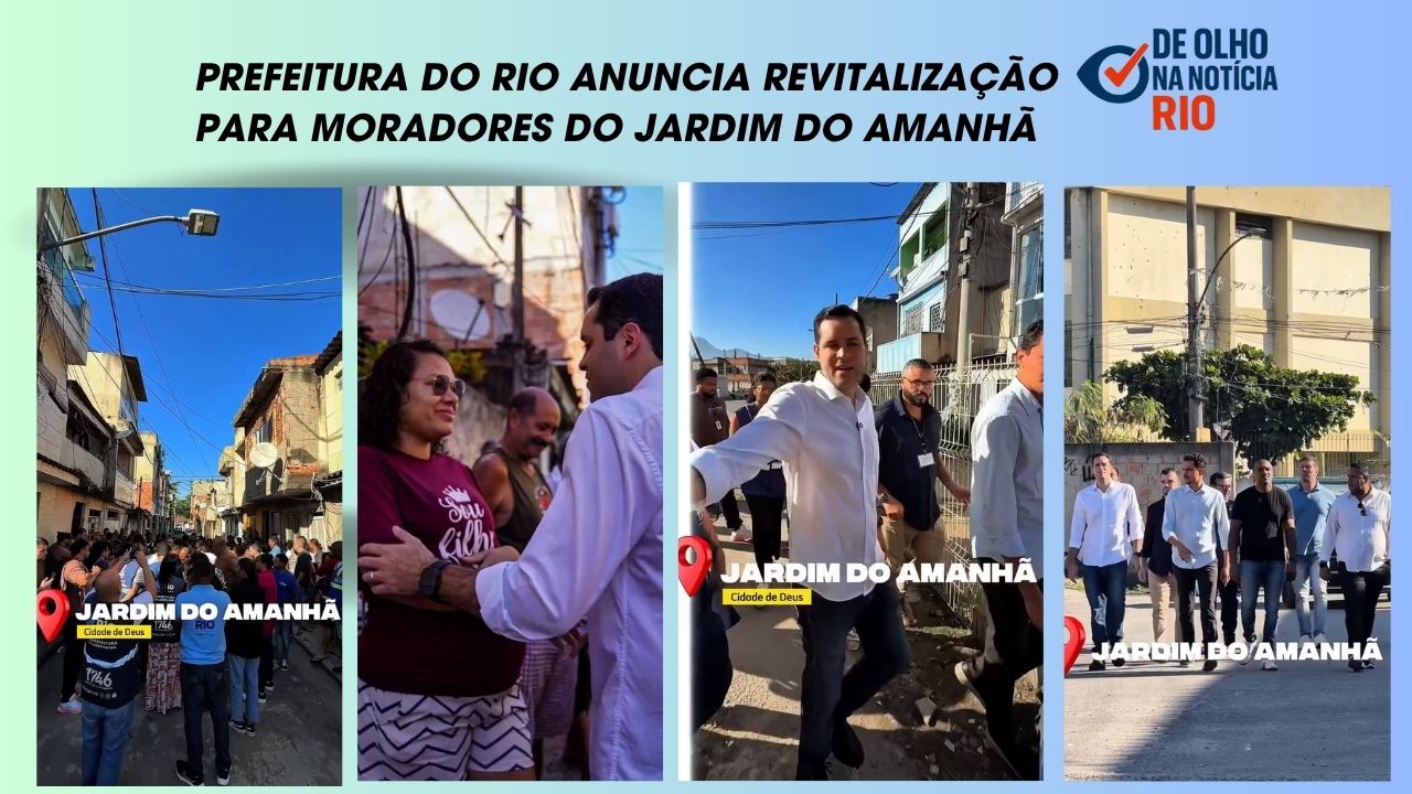 A Prefeitura do Rio, com Eduardo Cavaliere e Eduardo Paes, inicia a revitalização do Jardim do Amanhã na Cidade de Deus. Quarenta e quatro famílias em risco serão indenizadas, e o programa Casa Carioca será estendido, além da construção do Parque Jardim do Amanhã.